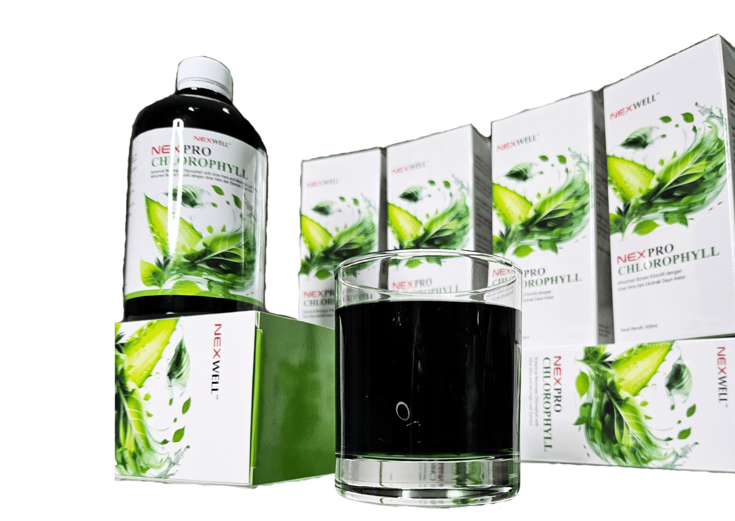 Klorofil adalah pigmen penting yang terdapat dalam sel kloroplas tumbuhan. Fungsi utamanya untuk menyerap tenaga cahaya daripada matahari semasa fotosintesis, proses dimana tumbuh-tumbuhan menukar karbon dioksida dan air kepada glukosa dan oksigen. Selain daripada fotosintesis, klorofil juga menawarkan banyak manfaat kesihatan untuk manusia. NEXPRO CHLOROPHYLL dihasilkan dengan Klorofil, Aloe Vera dan Daun Moringa; setiap tegukan bukan sahaja memberikan khasiat tetapi juga Menyegarkan Anda.